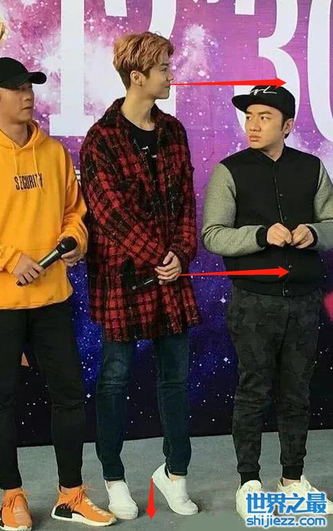 鹿晗本人也是对身高很不自信,和众多男明星合照的时候,都要垫脚来掩饰自己的身高。下图和王祖蓝合照的时候,他也是把脚垫得高高的,光看头的话确实很有效果,实际上把腰线一拉,依旧和王祖蓝相差不远,这就有点虐心了。