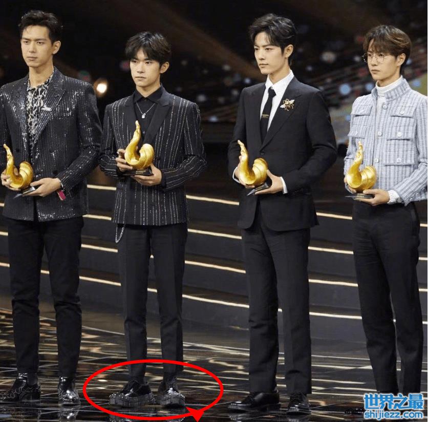 易烊千玺凭借《少年的你》横扫当年电影圈,当时最红的四位男星同台领奖,最年轻的易烊千玺不仅仅没有凭借天然的胶原蛋白优势碾压哥哥们,甚至穿着全场最厚的鞋子,还是在身材上都被虐惨。