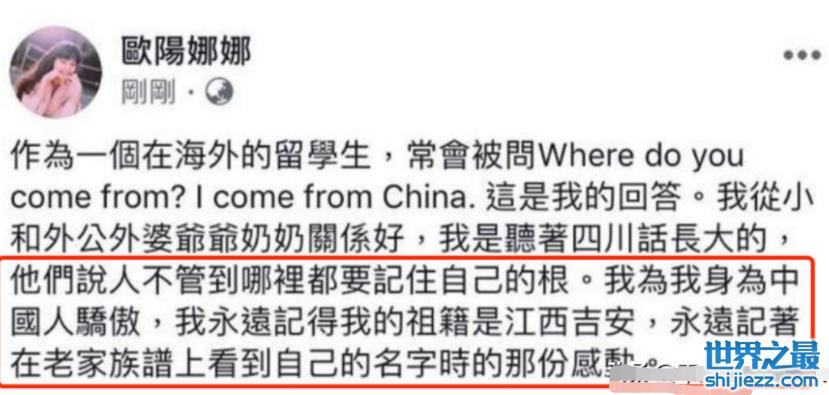 虽然年纪小,但欧阳娜娜在大是大非上很拎得清,她也是第一个公开在外网表明立场的星二代,虽然遭到了很多台湾网友的谩骂,但她也一直很坚定。