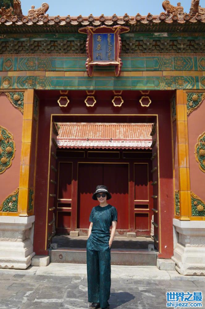 近日,演员孙俪在个人社交平台晒出两张与故宫合影的照片,引起网友热议。照片里,孙俪站在寿康门前,穿着一袭墨绿色花纹套装,戴着遮阳帽和墨镜,双手插兜十分帅气。可以看到孙俪整个人身材十分纤瘦,俯拍的视角显得很高挑。