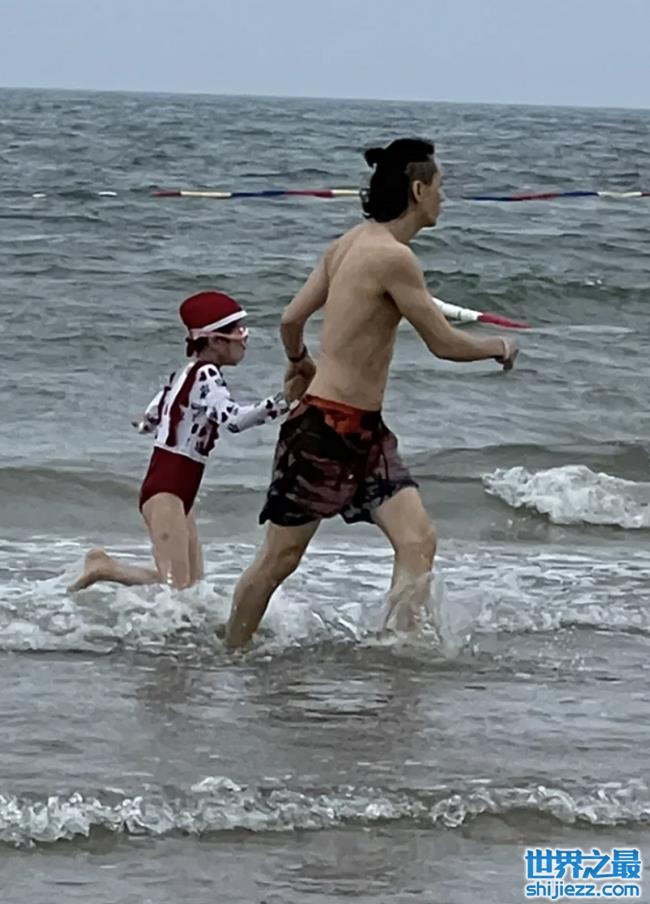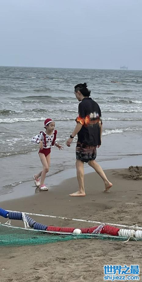 李承铉带女儿海边游玩,八块腹肌太惹眼,Lucky穿泳衣长腿出众 ...