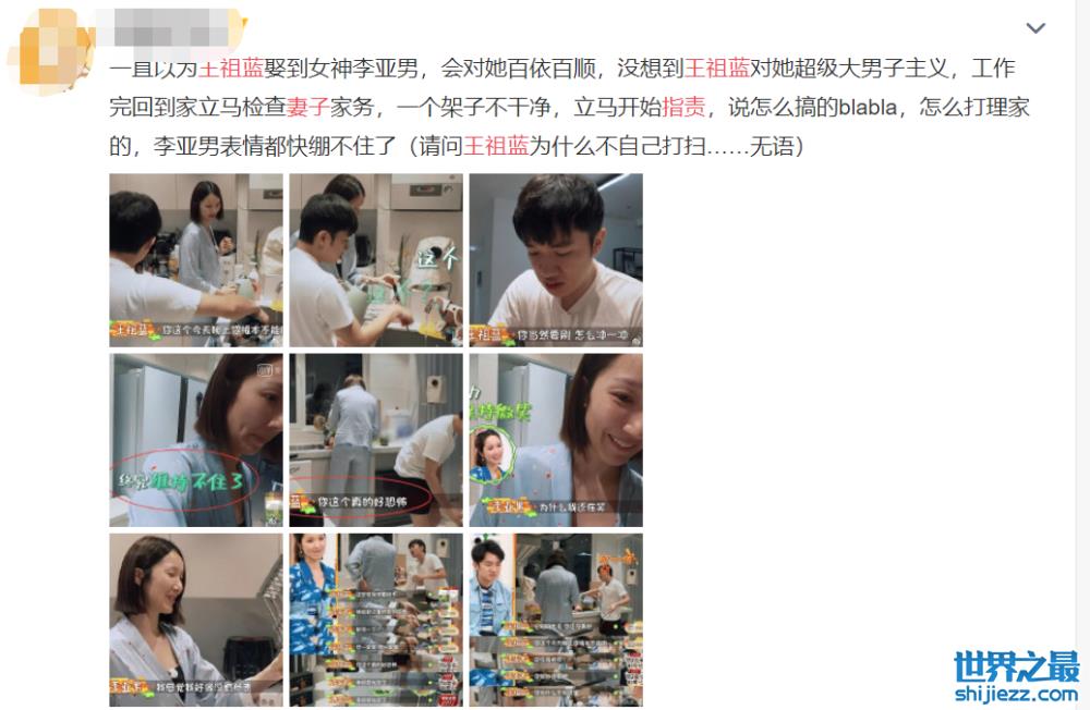 在节目里,大家发现王祖蓝对李亚男的态度并不好,比如家里的餐具放久发霉了,就指责怀孕的老婆将近十多分钟,