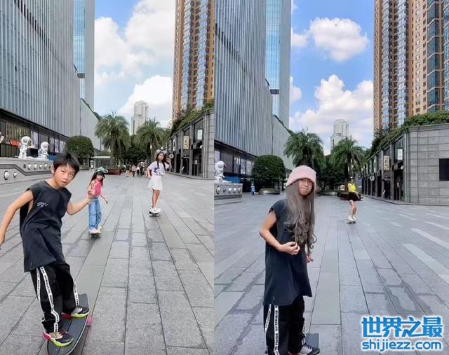 在视频中,蒋丽莎的四个孩子都有着不错的滑板水平,面对镜头的时候都会摆POSS,尤其儿子滑过来的时候比了一个非常酷的手势,女儿们紧随其后,大女儿和小女儿如今也已经长开,颜值继承了蒋丽莎。