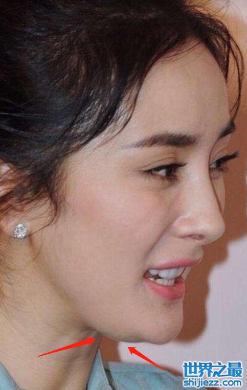 如今的杨幂两边凸出的颌骨却变成了顺溜的曲线,方形脸也摇身一变变成了尖尖的瓜子脸,两边取而代之的是找不到骨头贴合略显松垮的肉肉。