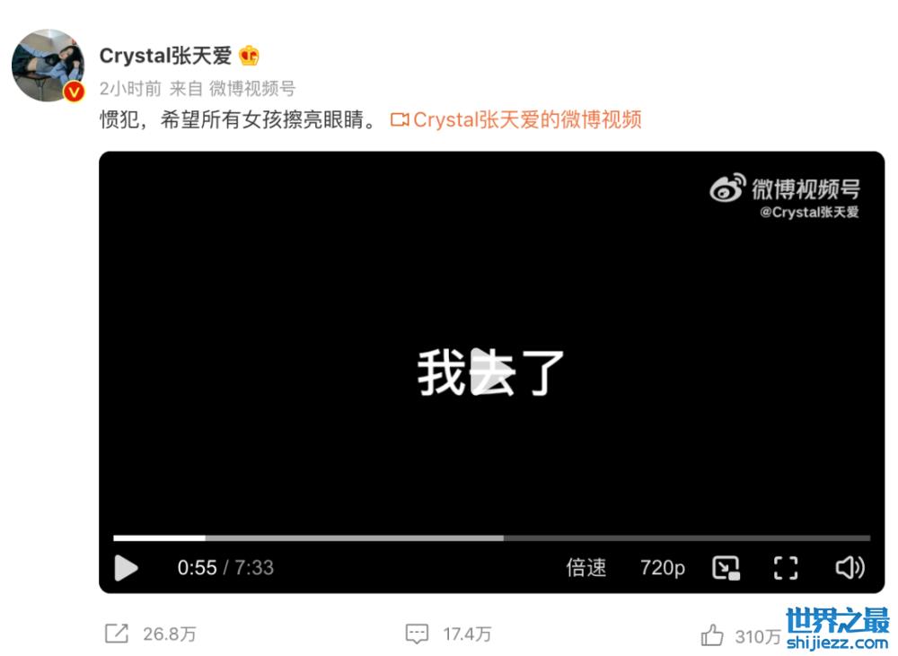 随后张天爱的经纪人在朋友圈发文,标题是“渣男的十大特征”。