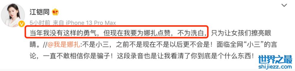 江铠同知道陈翔有女友,却还是成为了第三者,事业也因此一落千丈。但此次,她却转发娜扎的微博,并说自己不是为了洗白,而是让大家看清渣男。