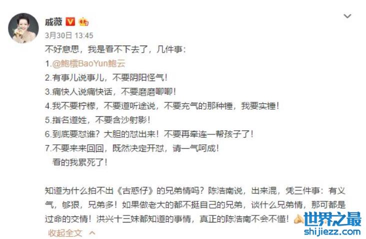 除了工作室,戚薇本人也亲自下场,字里行间能感受到姐已经火冒三丈了。