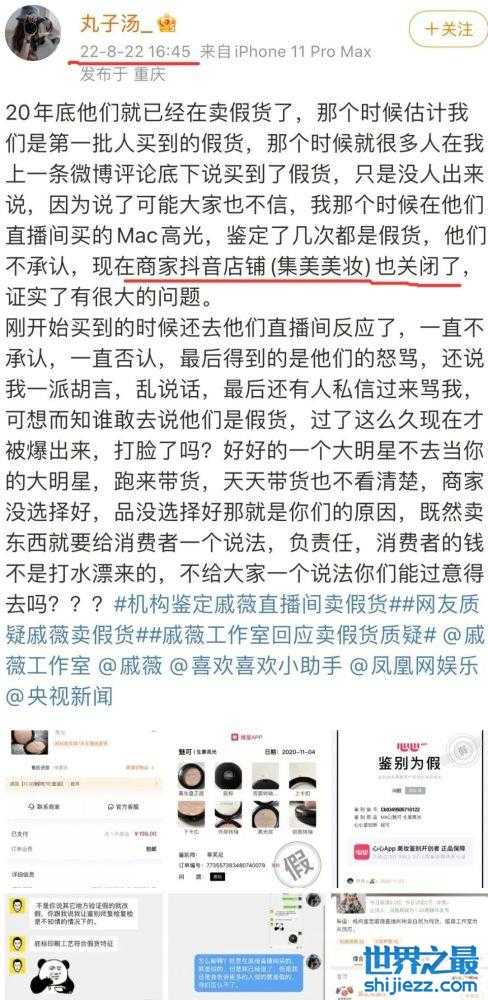 先是有网友控诉20年在她直播间买的mac生姜高光是假货,当时网友去直播间问,戚薇就表示自己卖的都是真品。