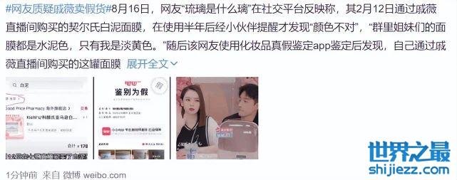 近日,戚薇因为直播带货被质疑卖假货的事件饱受外界热议,起因是一位名叫“琉璃”的女网友在网上爆料,声称自己此前在戚薇直播间购买了一款白泥面膜,然而收到的面膜与正品的颜色有些不同,自己购买到的是淡黄色面膜,而群里的姐妹买到的是水泥色,这位网友随即认为自己买到了假货,便通过软件进行鉴定,最终得出的结论是假货。