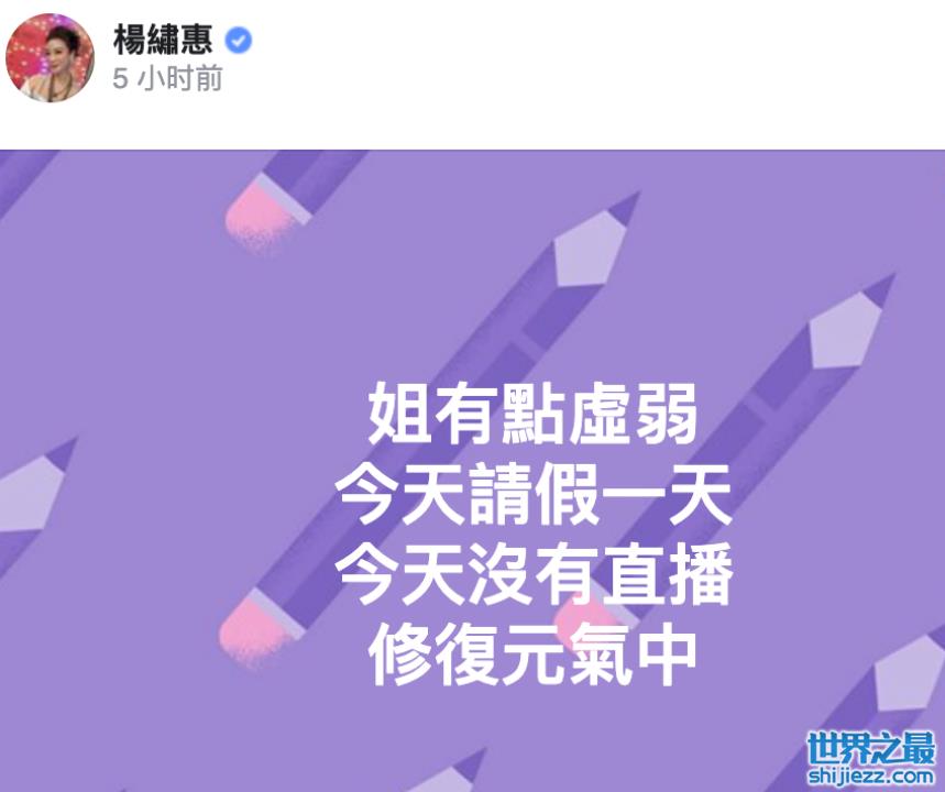 谁曾想刚吐槽完工作太累,没多久就真的突发胃病去看急诊。目前杨绣惠身体情况已经稳定,向粉丝发文报了平安,表示因为太虚弱请假一天,正在努力恢复元气中,要以更好的状态重回工作岗位。