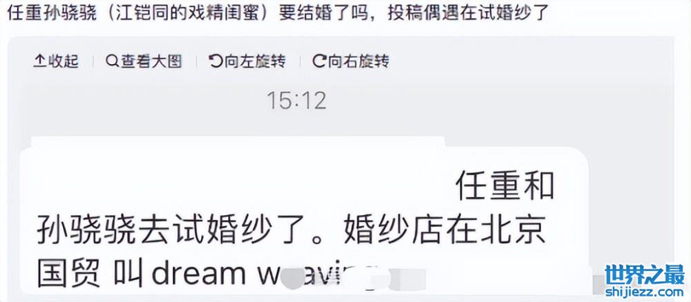 近日,有网友爆料演员任重与孙骁骁现身北京某婚纱店试婚纱。消息一出立刻引起不少网友围观。据这位网友爆料,任重与孙骁骁现身北京国贸的某家婚纱店,两人在店里试婚纱,疑似要结婚了。