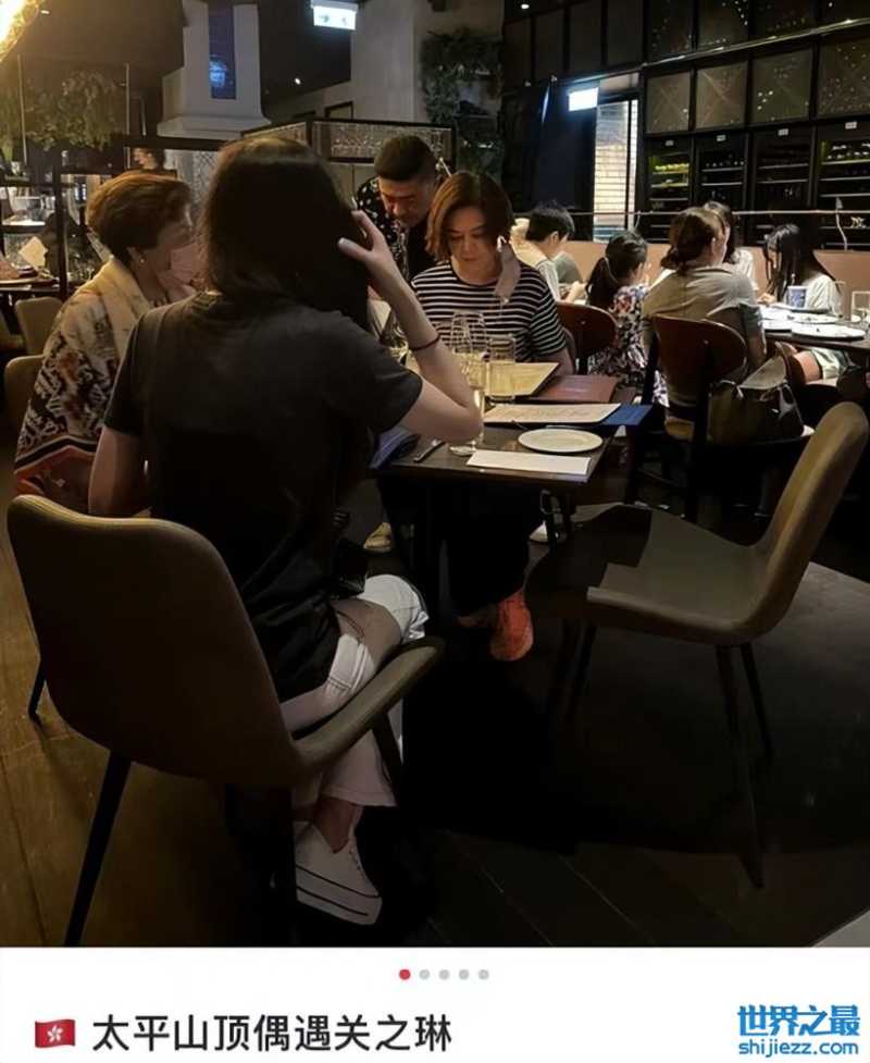 从照片来看,关之琳打扮得相当简单穿着条纹上衣,脸上也没有化任何妆,再加上餐厅灯光十分昏暗,如果不仔细辨认的话,坐在人群中时,大家甚至很难发现她就是女神关之琳。