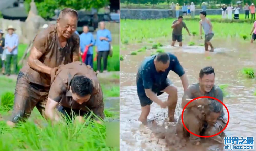 鲁健老师跟着村民们一起下地插秧,结果被村民们合伙往他身上丢泥巴,还特意把他上半身往泥田里按,鲁健老师秒变“小泥人”。鲁健下意识大声叫喊,但心情跟村民们一样十分快乐,岸边围观的村民们也哈哈大笑。