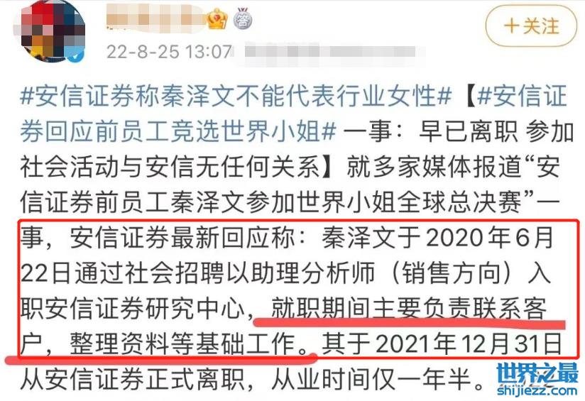 其实她在安信只待了一年半,做的是联系客户、整理资料的文职,跟金融分析不沾边。