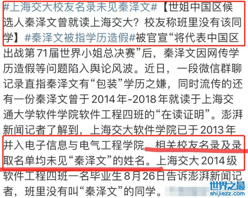 靠着漏洞百出的学历和简历,秦泽文能拿下“世界小姐”总决赛的门票,当然不全是靠自己。