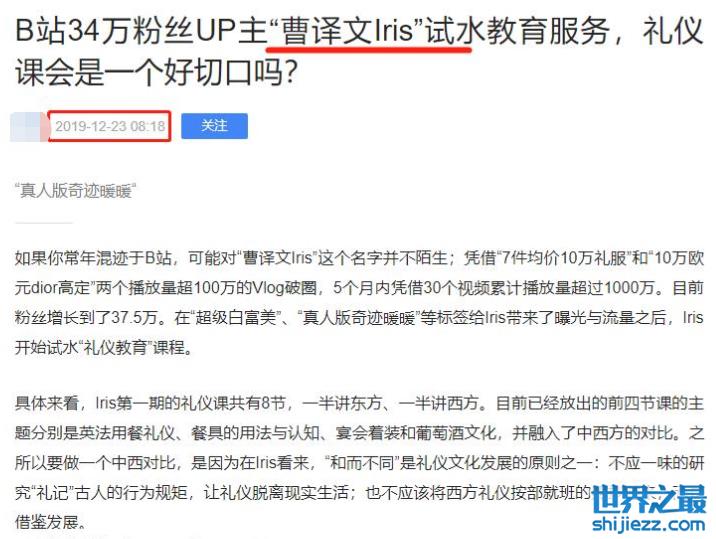除了这三位大哥,秦泽文还被曝与上海知名富二代曹译文有关系。秦泽文曾参与过曹译文的创业活动,两人联合在某视频平台推出了教授礼仪知识的付费课程。