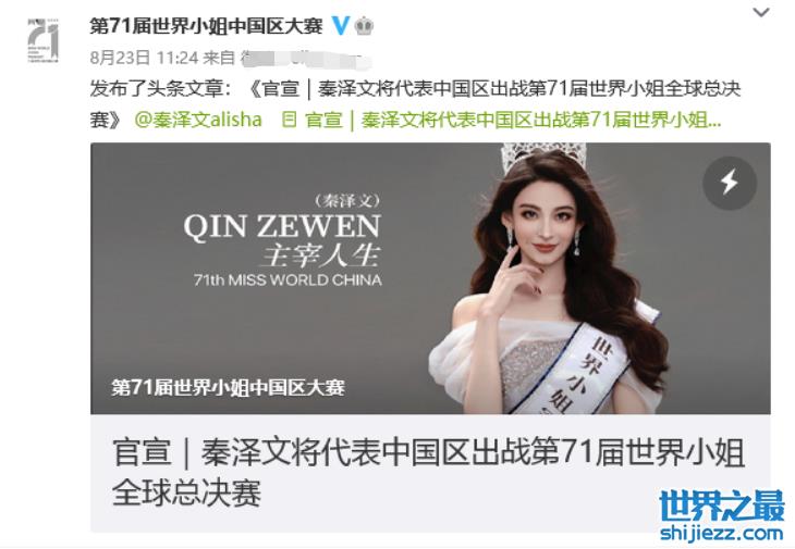 今年,代表中国参加第71届“世界小姐”全球总决赛的,是年仅25岁的秦泽文,也就是咱们今天要说的主角。