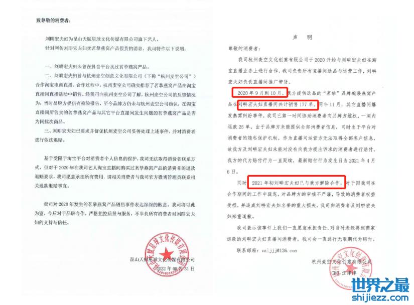 同时刘畊宏也晒出了两年前的一些相关资料。刘畊宏此前的确曾在某平台买过同款的燕窝产品,但究竟是不是同一批次的问题产品,目前并没有得到证实。而且刘畊宏在2021年就已经结束了和该团队的合作,目前并不属于该机构的成员之一。