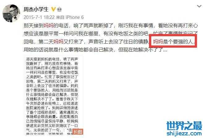 2016年10月21日,周杰曾发文说父亲解脱了,