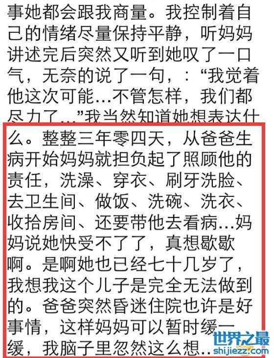周杰还提到过,三年多的时间,周杰妈妈做饭,洗衣服,洗澡,去卫生间等等,他妈妈照顾老头都要受不了了,所以当年周杰爸爸昏迷住院,他还说是一件好事,因为他妈妈就可以缓一缓。