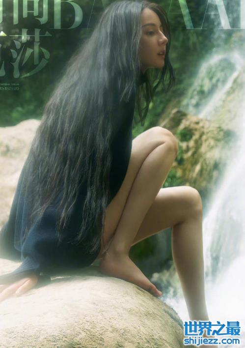 为了配合这一次的拍摄风格,迪丽热巴作为模特的牺牲也很大,全程几乎都是光着脚坐在山间的大石头上,除此之外,她甚至还需要整个人坐到飞流直下的瀑布中间,头顶着水流摆出享受惬意的模样。