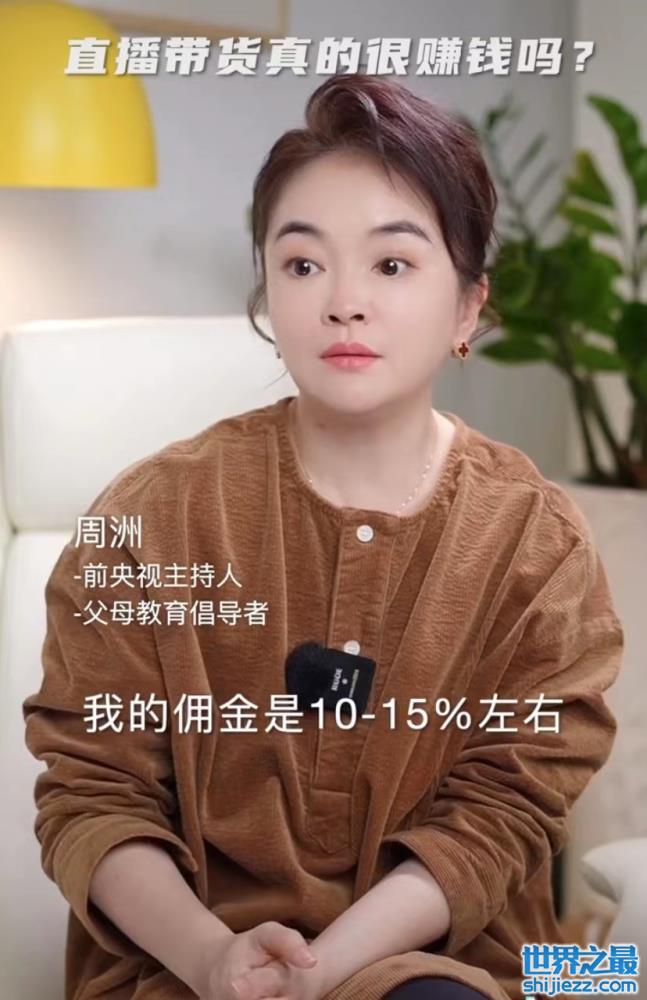 早前有媒体报道,周洲一场直播下来有上百万的成绩,但周洲表示自己能拿到的佣金大概在10%到15%之间,也就是说一场成交额100万的直播下来,她能拿到的钱是10万到15万左右。