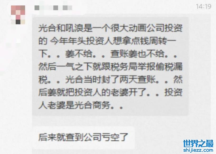 针对姜广涛被抓的具体原因,有网友再度爆料,透露光合积木公司与吼浪文化公司因为涉嫌职务侵占接受调查,涉及金额高达3000万,对此,有网友还晒出了详尽的信息资料。