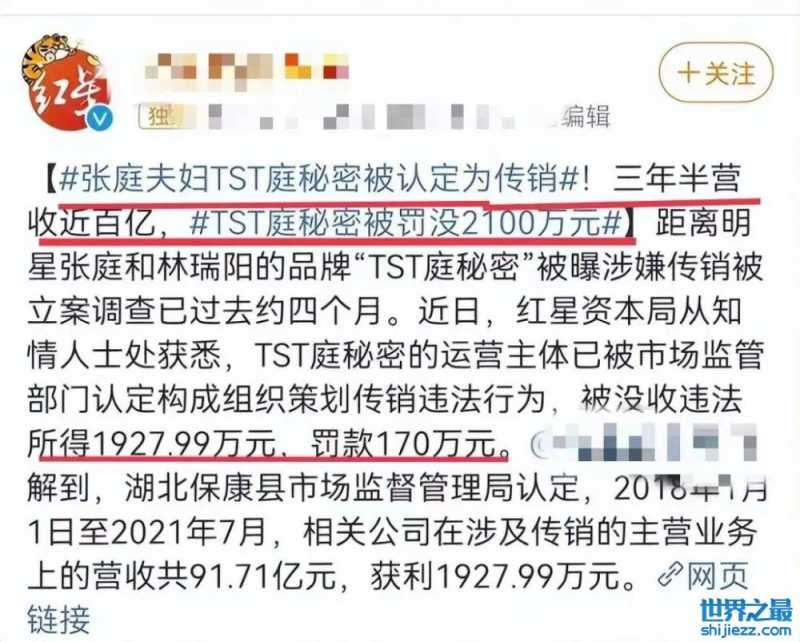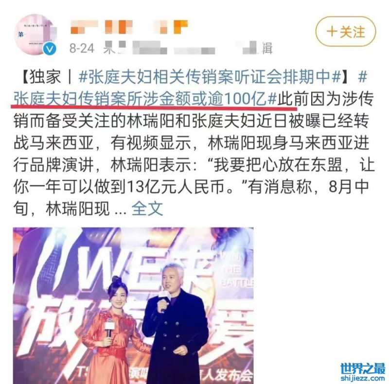 然而,纸包不住火,张庭林瑞阳做传销的事情,终于被曝光了。经官方查证,张庭所在公司TST庭秘密被认定为传销,三年半营收近百亿,被罚2100万元,公司名下96套房产被查封,价值17亿。