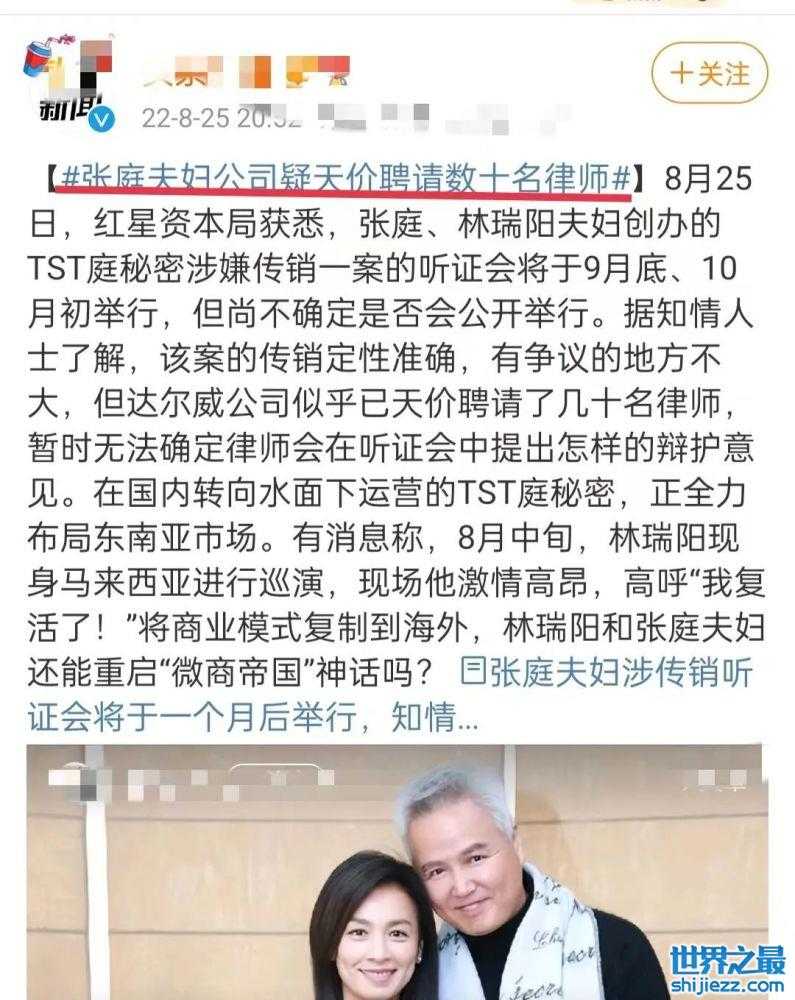 不仅如此,更有知情人爆料,张庭林瑞阳相关传销案听证会排期中,夫妻俩已经天价聘请数十名律师,真是为了钱,无所不用其极啊。