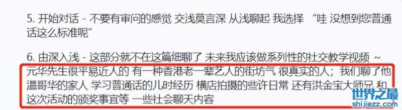据悉,该网友自称是在华人电影节上偶遇到元华,称其获得了终身成就奖。随后他还在后台与元华亲切交流,极力称赞元华身上很有香港老一辈艺人的真实气息,非常平易近人,他们还聊到国外成长经历以及横店拍戏等等很多演艺生活中的难忘经历。