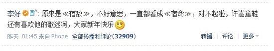 其实李好此前主持中也曾犯过低级错误,当年李好主持江苏卫视跨年晚会时曾报错许嵩歌名,将《宿敌》说成《宿命》,事后他还阴阳怪气,一边道歉一边说“许嵩还有喜欢他的歌迷啊”,这事到现在很多网友都记忆深刻。