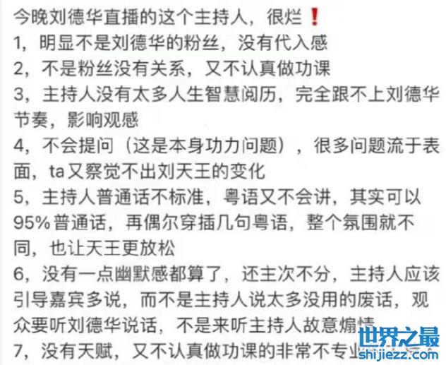 而类似的对话在直播中多次出现,在刘德华演唱完《天天想你》后,李好随口又问他天天想谁,这问题问得很多人都震惊了,如果说一次说错话或许是因为太紧张,但频繁说错且不会提问,真就是主持不够专业了,有网友也罗列了李好主持很不专业的一些细节。