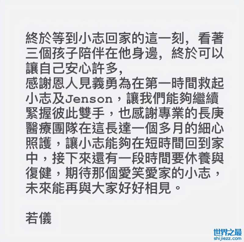 车祸过去这么多年了,希望大家不要再做出伤害孩子的事情。而陈若仪也在此前多次感谢了当时见义勇为的救命恩人们,小志也回到了家中等待着完全的康复。
