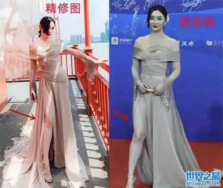 精修图和现场照一对比,就知道P得有多狠,现场照袁姗姗的小腿和大腿看着很粗,没有美感。精修图里直接P成一条直线,看着十分纤瘦。原来一双美腿是P出来的。