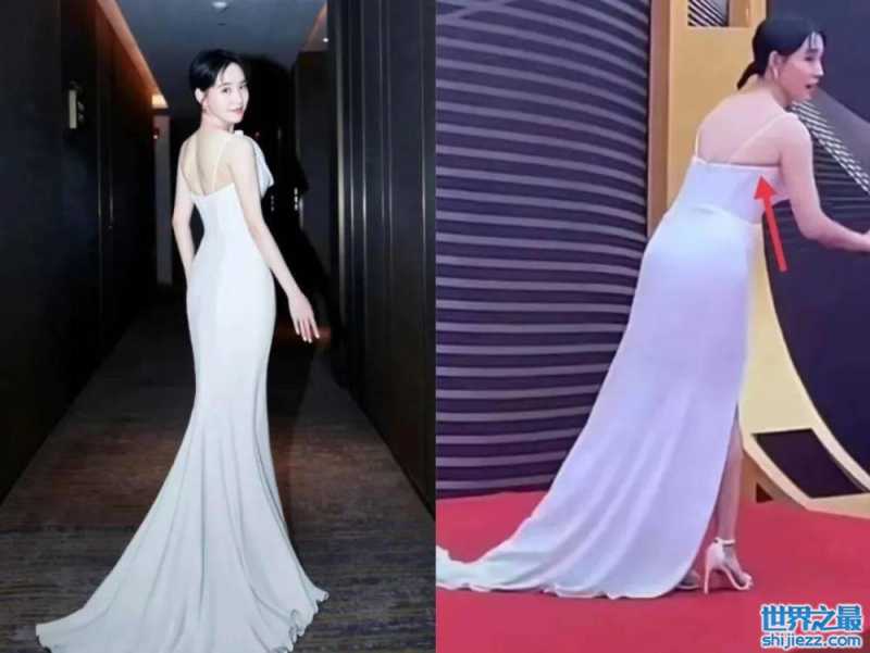 从网友拍到的现场图来看,宁静大肚子一眼就看出来了,而且这条裙子本来就很贴身,腰间赘肉遮不住。所以只能靠修图师,把赘肉修掉。明星的精修图真是具有欺骗性。