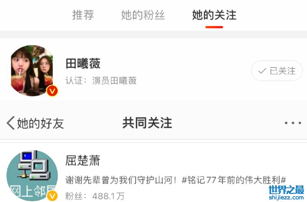 另外,她还是新版《上错花轿嫁对郎》的女主角。田曦薇和屈楚萧看似没有交集,但两人早已经微博互关了。