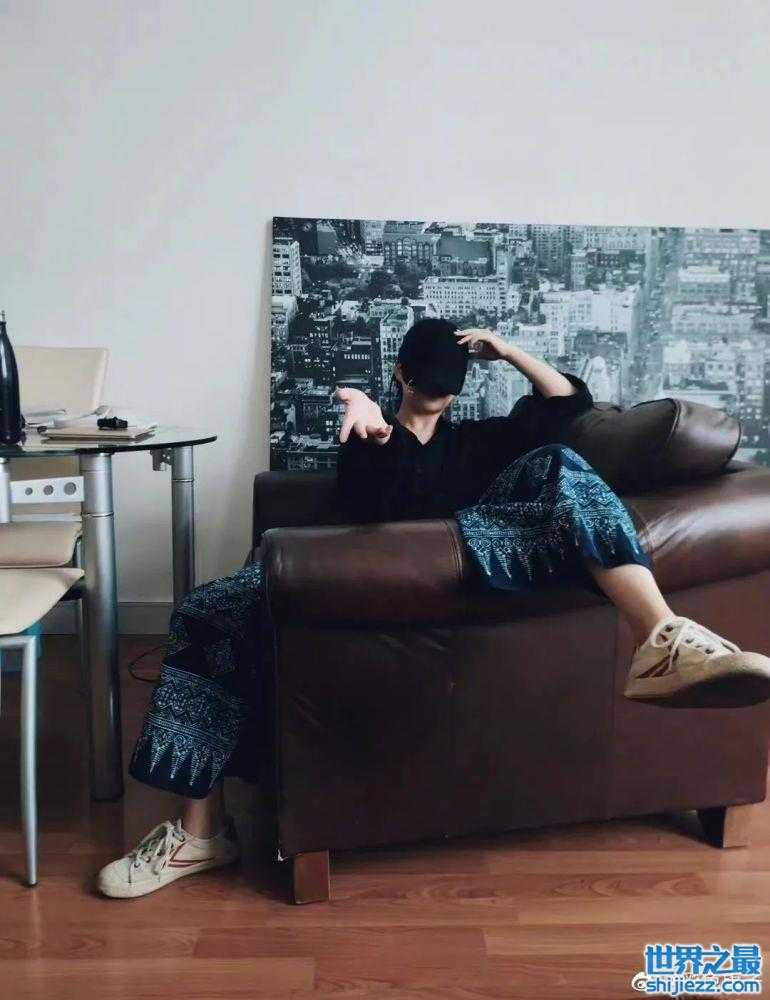 另一张照片是在室内拍摄的,小彩旗坐在沙发上,头上戴着鸭舌帽帽子遮住了大半张脸,她姿态悠闲。