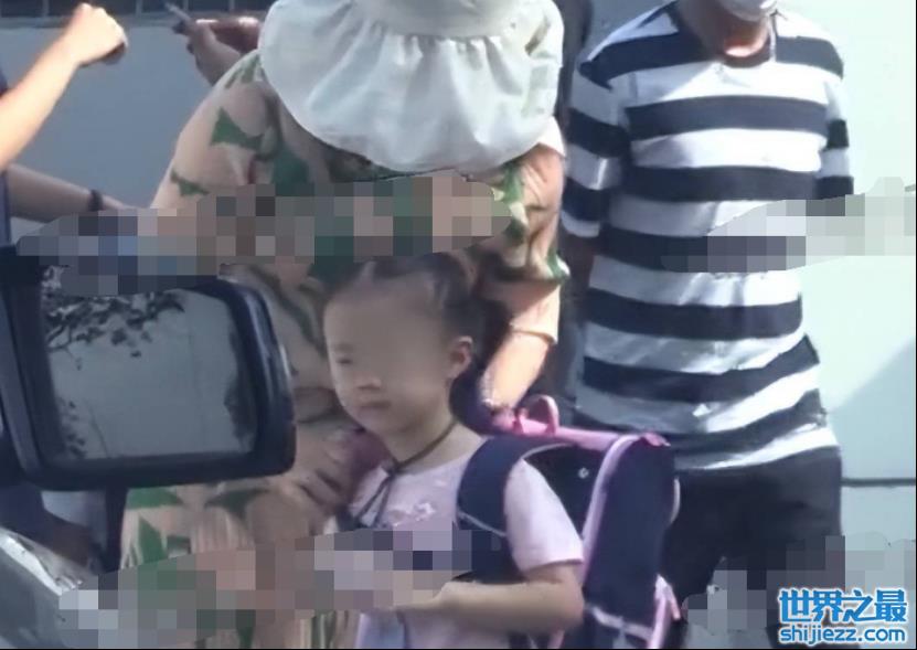 另一个双胞胎女儿则是由保姆牵着走在后面,她也身穿同款公主裙,还留着齐刘海发型。