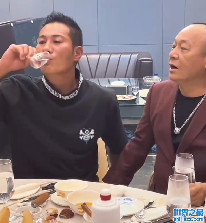 随后,黄竣锋拿起分酒器,那个小杯子中保守估计有二两白酒,他一口就喝下去了,一旁的吴志雄直呼海量海量。