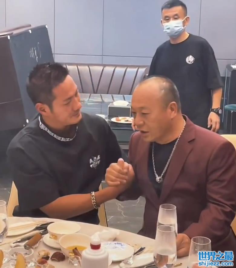 之后,黄竣锋似乎还沉浸在与大哥相识的喜悦中,一边握着手,另一边还不能轻拍着吴志雄的背,两人的举止非常熟稔。