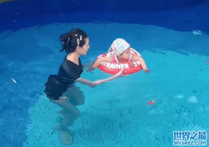 认真教女儿游泳的苗苗,为了让女儿克服对水的恐惧,还直接到水里为女儿游了一段时间,女儿戴着泳帽和泳圈努力模仿妈妈的样子,看起来属实可爱。苗苗在水下自在畅游的模样则是格外优雅,一双纤细修长的腿,在泳池中看起来就像是会发光一般。