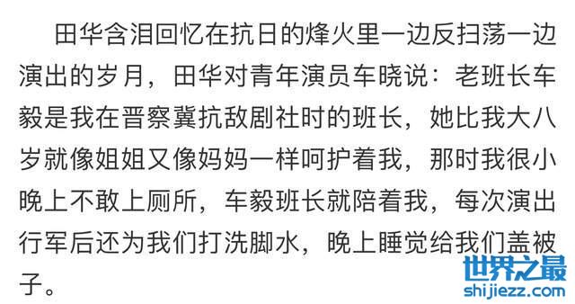 据田华本人透露,车毅是她在晋察冀抗敌剧社时的班长,两人关系十分亲密,由于车毅年长8岁,所以一直对田华很照顾。