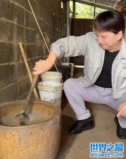 看得出曹荣老家的装修还很简陋,牛棚、猪圈都是乡下常见的环境:水泥砌墙、顶棚漏风,泔水桶结了好几层痂了,但曹荣却很乐在其中。