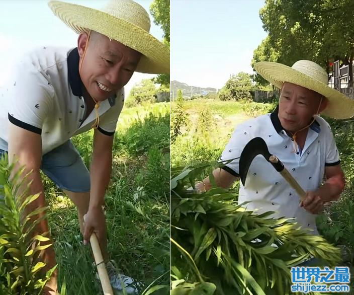 谁能想到印象里的大佐,也有在田间干活的一天。如今杨清文还在坚持演戏,但空闲时就会回到乡间。看着他拿着镰刀、戴着草帽割草,看起来对干农活十分熟悉。