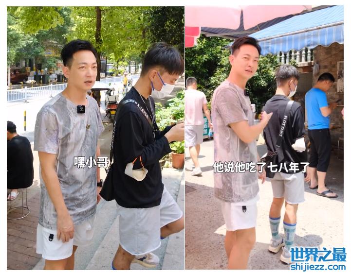 42岁的他保养得当,皮肤看起来非常紧致,十分年轻就像三十岁小伙子。旁边的居民似乎也无人认出他来,他也十分坦然,甚至还与前面的小哥搭讪询问是否好吃。