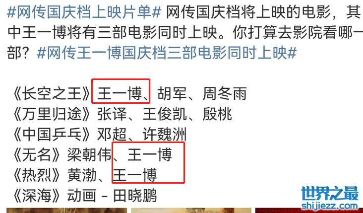 最近两年,王一博又开始转型了,从小荧幕进军大银幕,准备变成电影咖。他带着资本,在演员的道路上,一路高歌猛进、资源好到爆炸。今年国庆档,王一博就将有三部电影同时上映。