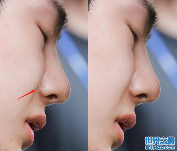 因为仔细对比一下其他男星的鼻孔,就会发现王一博的尴尬。同样是高清生图,其他男星的鼻翼基本都是流畅的,没有截断的疤痕。