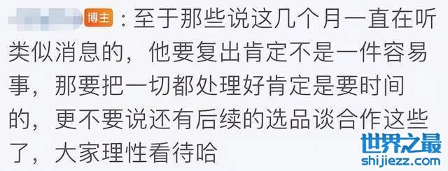 可以看出,这位网友的发言比较谨慎,其中也特别提到在此过程中保不齐会有意外变数,所以大家只能继续观望与等待,共同期盼李佳琦能早日回到直播间。