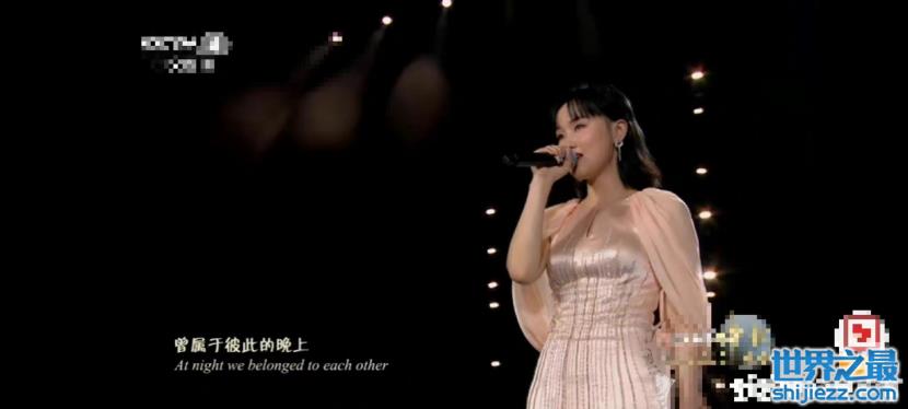 黄龄和曾比特合唱了《千千厥歌》,她也穿了粉色款长裙,肩部采用了薄纱设计,增添了几分柔媚感。