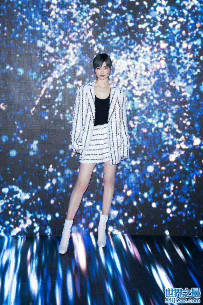 而她当晚选择了绒面白黑白条纹套装,展露出一双大长腿,尽显干练利落的魅力风采。